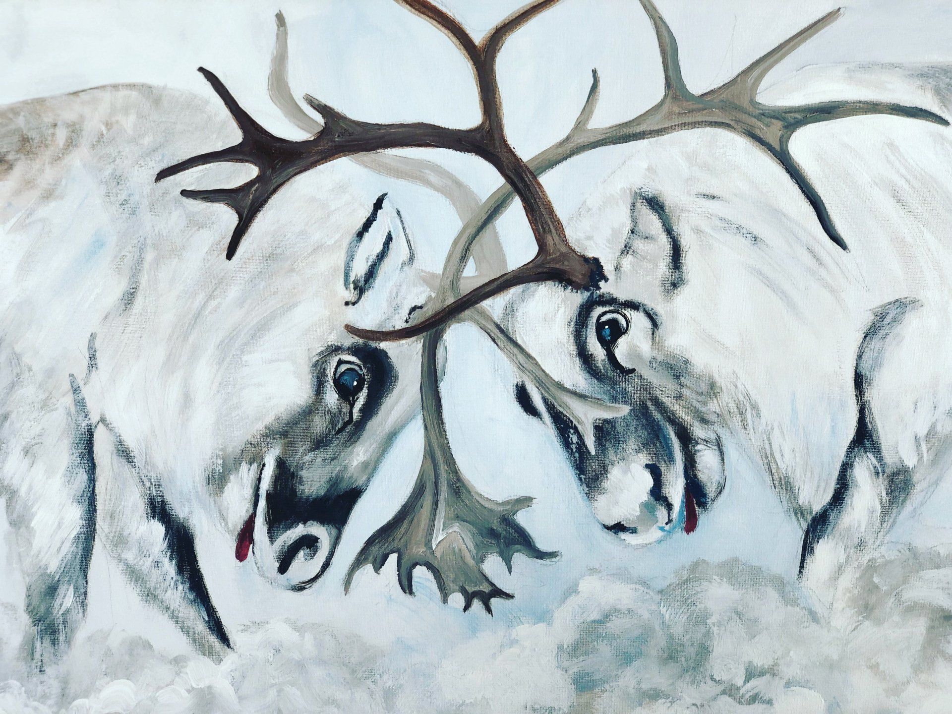 Kämpfende Rentiere (50 x 70) 300,- EUR